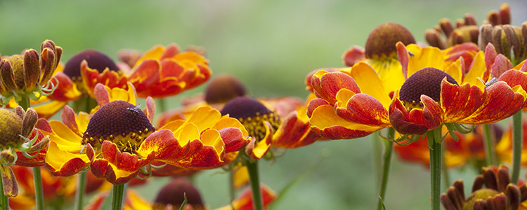 Helenium is weer helemaal terug. Gelukkig maar, want Helenium is een geweldige borderplant, aantrekkelijk voor vlinders en bijen. De bloemblaadjes wippen een beetje op en dat geeft de bloemen iets zwierigs. Deze zomerbloeier laat zich heel goed combineren. Als partner van grassen is Helenium in topvorm.